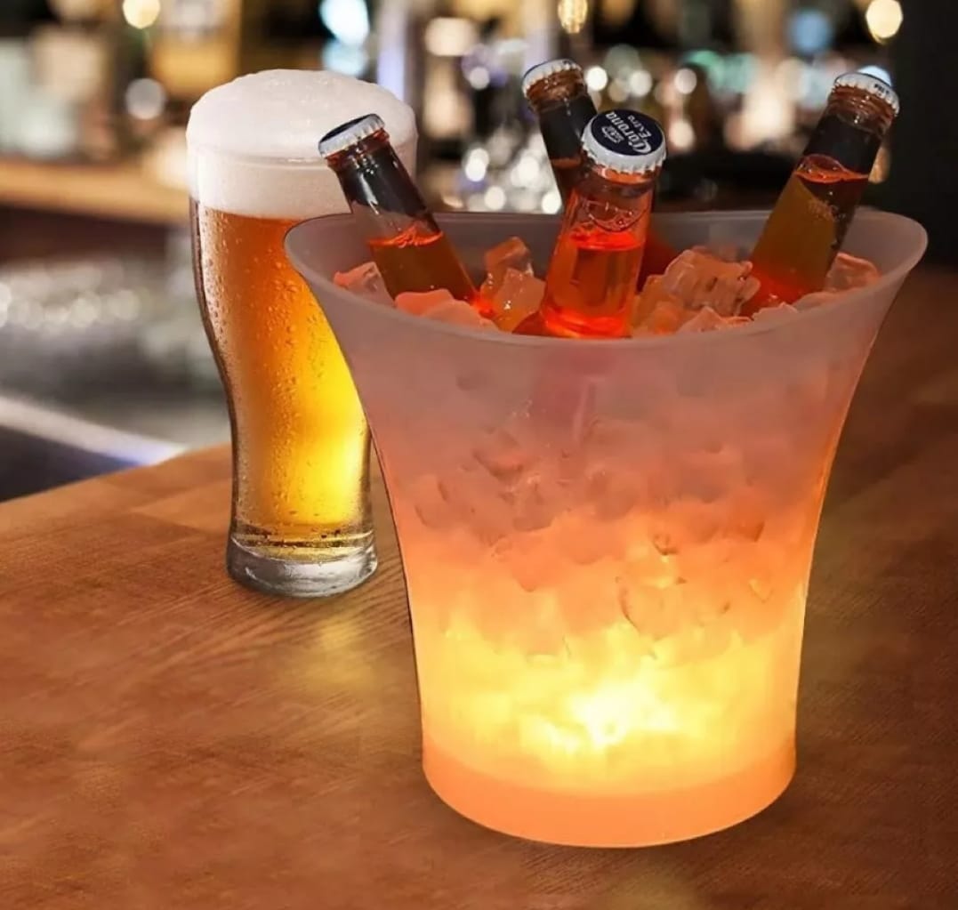👉 ¡Con la Cubeta Hielera con Luz LED y Parlante tus celebraciones nunca volverán a ser las mismas!
